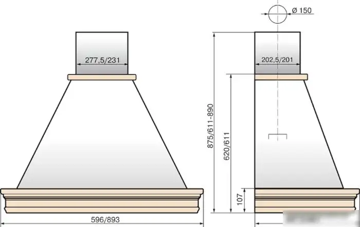конструкция купольная, монтаж настенный, ширина 59.6 см, управление механическое/слайдерное, производительность мотора 650 м3/ч, цвет бежевый