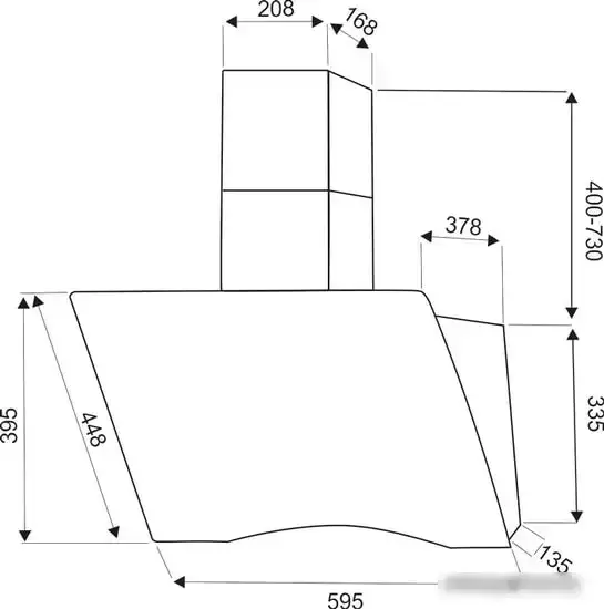 конструкция наклонная, монтаж настенный, ширина 59.5 см, управление сенсорное, производительность мотора 1000 м3/ч, цвет белый