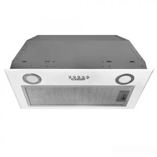 конструкция скрытая, монтаж для встраивания, ширина 52.5 см, управление механическое/кнопочное, производительность мотора 1000 м3/ч, цвет белый