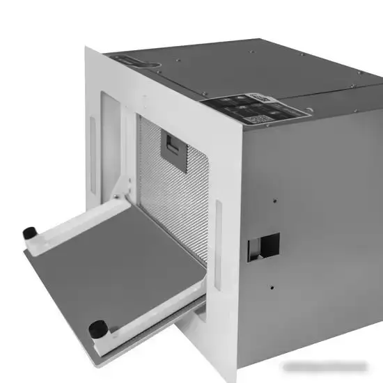 конструкция скрытая, монтаж для встраивания, ширина 52 см, управление дистанционное, производительность мотора 1000 м3/ч, цвет белый