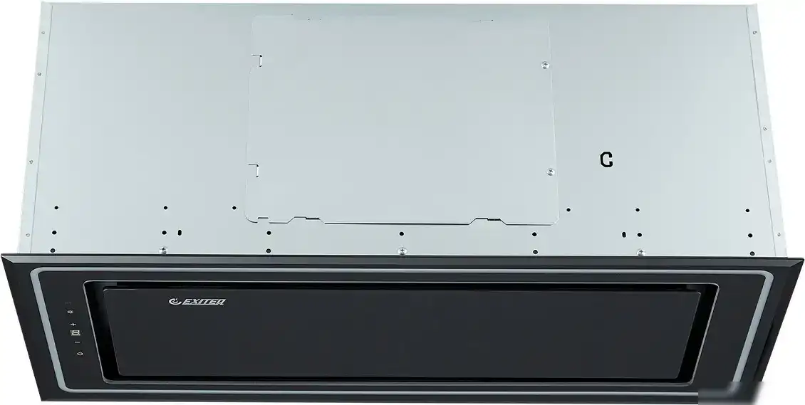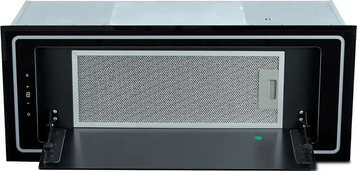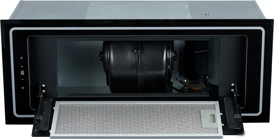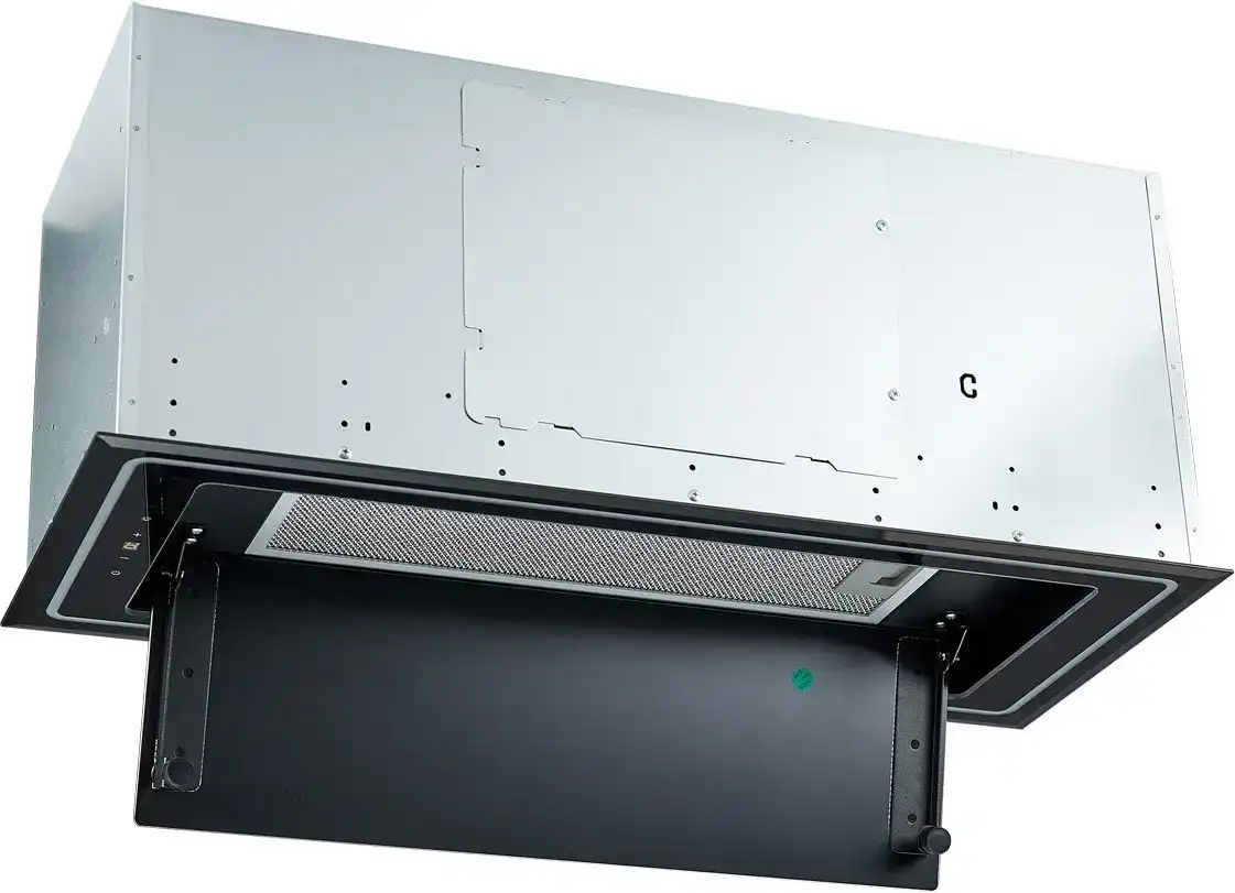 конструкция скрытая, монтаж для встраивания, ширина 72 см, управление сенсорное/дистанционное, производительность мотора 1000 м×/ч, цвет черный