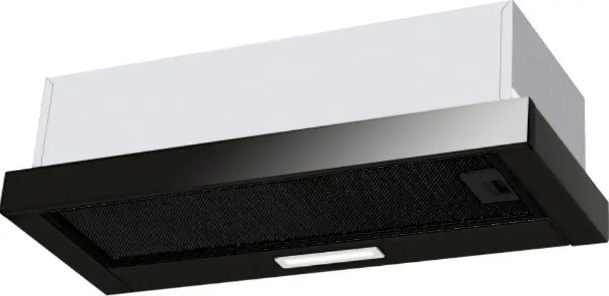 конструкция скрытая, монтаж для встраивания, ширина 59.5 см, управление сенсорное, производительность мотора 850 м×/ч, цвет черный