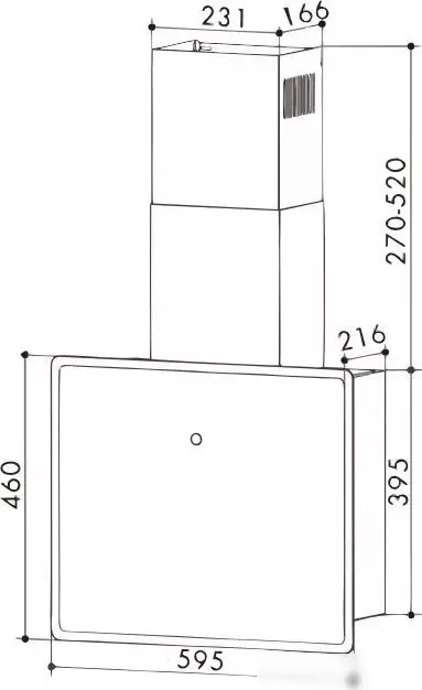 конструкция наклонная, монтаж настенный, ширина 59.5 см, управление сенсорное, производительность мотора 800 м×/ч, цвет черный