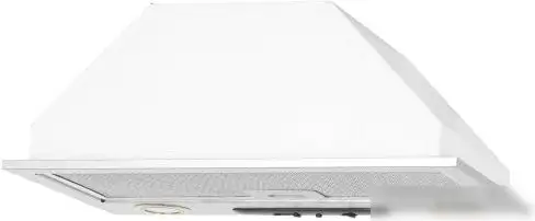 конструкция скрытая, монтаж для встраивания, ширина 50 см, управление механическое/слайдерное, производительность вытяжки 400 м×/ч, цвет белый