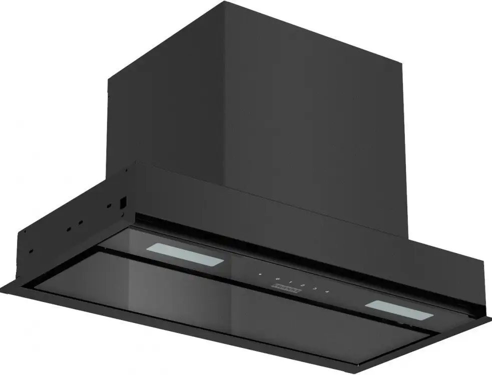 конструкция скрытая, монтаж для встраивания, ширина 59.8 см, управление сенсорное/дистанционное, производительность мотора 1000 м×/ч, цвет черный