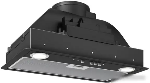 конструкция скрытая, монтаж для встраивания, ширина 50 см, управление механическое/кнопочное, производительность вытяжки 1000 м×/ч, цвет черный