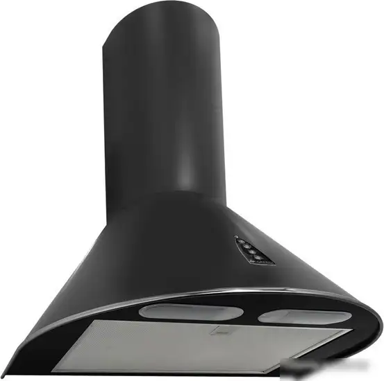 конструкция купольная, монтаж настенный, ширина 60 см, управление кнопочное, производительность мотора 1000 м3/ч, цвет черный