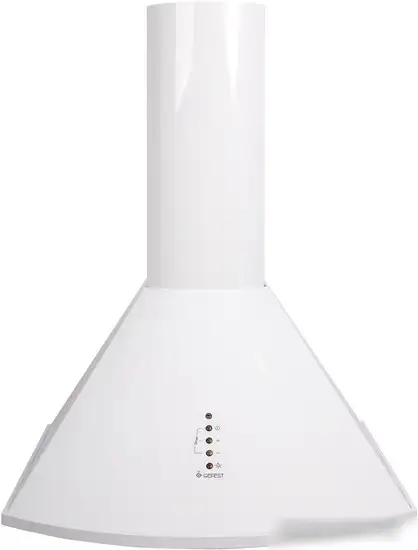 конструкция купольная, монтаж настенный, ширина 60 см, управление механическое/кнопочное, производительность вытяжки 450 м×/ч, производительность мотора 750 м×/ч, цвет белый