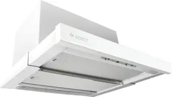 конструкция телескопическая, монтаж для встраивания, ширина 60 см, управление механическое/слайдерное, производительность мотора 600 м3/ч, цвет белый