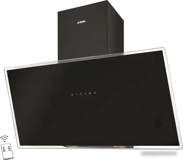 конструкция наклонная, монтаж настенный, ширина 90 см, управление сенсорное, производительность мотора 1000 м3/ч, цвет черный