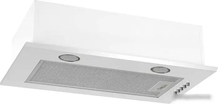 конструкция скрытая, монтаж для встраивания, ширина 60 см, управление механическое/кнопочное, производительность мотора 800 м3/ч, цвет белый