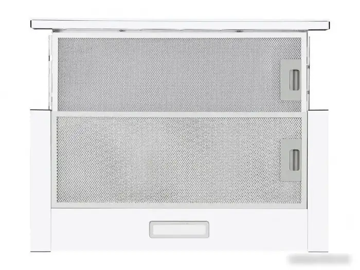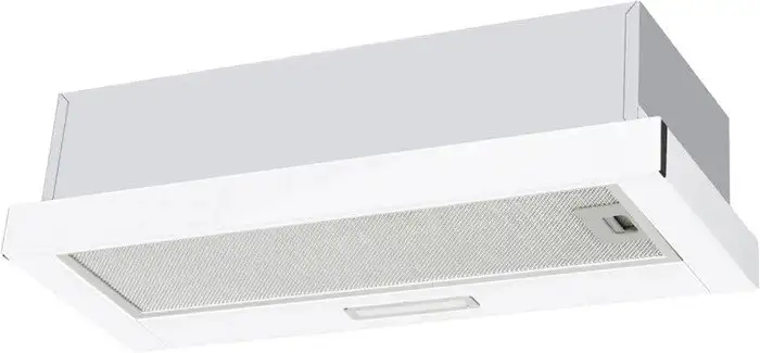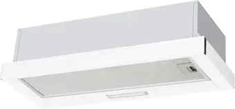 конструкция телескопическая, монтаж для встраивания, ширина 60 см, управление механическое/слайдерное, производительность мотора 600 м×/ч, цвет белый