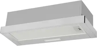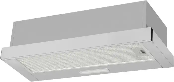 конструкция телескопическая, монтаж для встраивания, ширина 60 см, управление механическое/слайдерное, производительность мотора 600 м×/ч, цвет нержавеющая сталь