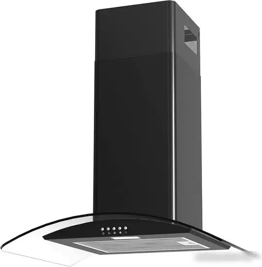 конструкция купольная, монтаж настенный, ширина 50 см, управление электронное/кнопочное, производительность мотора 900 м×/ч, цвет черный