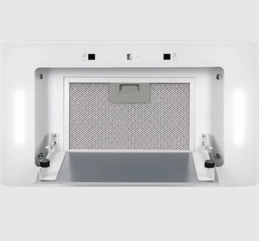 конструкция скрытая, монтаж для встраивания, ширина 52 см, управление сенсорное/жестами, производительность мотора 900 м×/ч, цвет белый