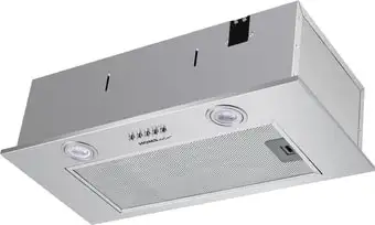 конструкция скрытая, монтаж для встраивания, ширина 59.8 см, управление механическое/кнопочное, производительность мотора 850 м3/ч, цвет нержавеющая сталь