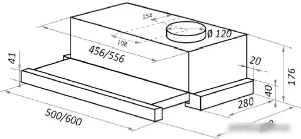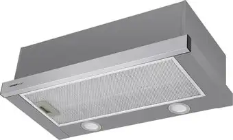 конструкция телескопическая, монтаж для встраивания, ширина 60 см, управление механическое/кнопочное, производительность вытяжки 177 м3/ч, производительность мотора 520 м3/ч, цвет нержавеющая сталь