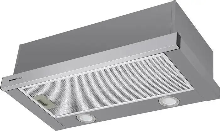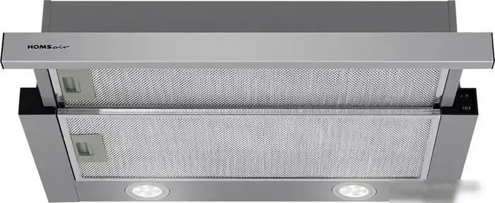 Кухонная вытяжка HOMSair Flat 60 выполнена из нержавеющей стали и имеет стильный классический дизайн. Ее конструкция телескопическая и предназначена для встраивания, что позволяет легко установить ее в кухонный шкаф. Управление осуществляется механическими кнопками, а освещение создаётся двумя светодиодными лампами, что делает работу более комфортной. Максимальная производительность вентиляции достигает 177 куб. м/ч, а мощность мотора — 100 Вт, что обеспечивает быструю уборку воздуха. У вытяжки есть жироулавливающие алюминиевые фильтры, которые легко очищаются, а также компактные габариты — шириной 60 см и высотой всего 17,6 см. Благодаря низкому уровню шума — всего 45 дБ — она работает практически бесшумно.