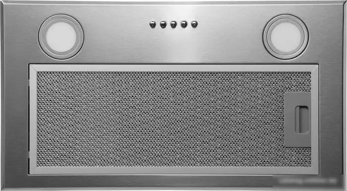 конструкция скрытая, монтаж для встраивания, ширина 49.4 см, управление механическое/кнопочное, производительность мотора 550 м×/ч, цвет нержавеющая сталь