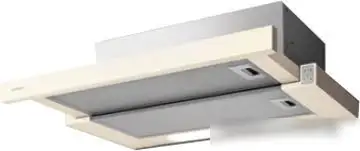 конструкция телескопическая, монтаж для встраивания, ширина 49.8 см, управление механическое/кнопочное, производительность мотора 650 м3/ч, цвет кремовый