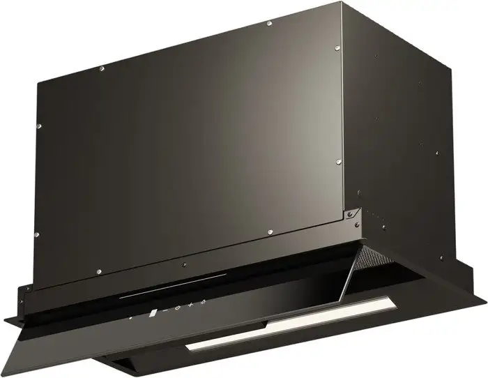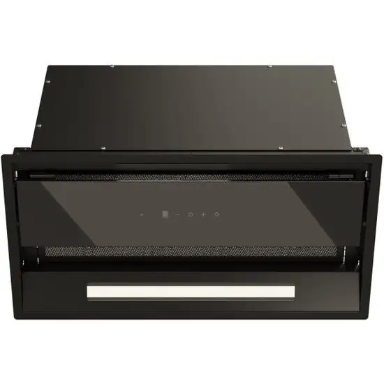 конструкция скрытая, монтаж для встраивания, ширина 58 см, управление сенсорное, производительность мотора 1000 м×/ч, цвет черный