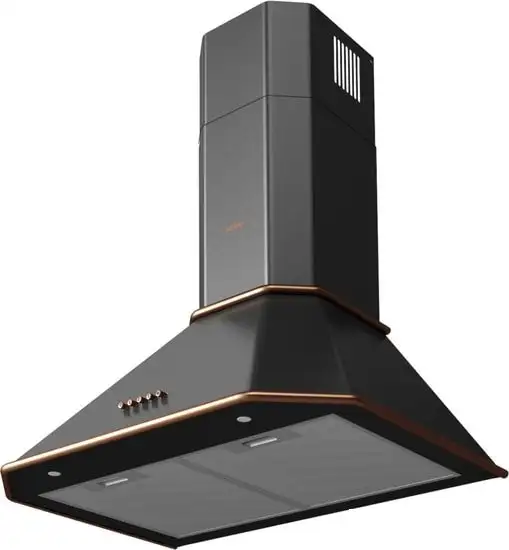 конструкция купольная, монтаж настенный, ширина 59.8 см, управление механическое/кнопочное, производительность мотора 800 м3/ч, цвет черный