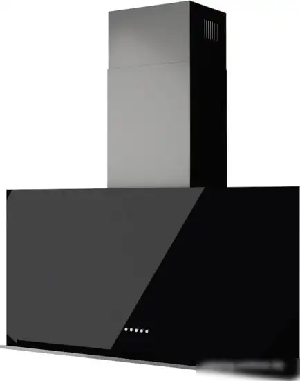 конструкция коробчатая, монтаж настенный, ширина 90 см, управление механическое/кнопочное, производительность мотора 550 м3/ч, цвет черный