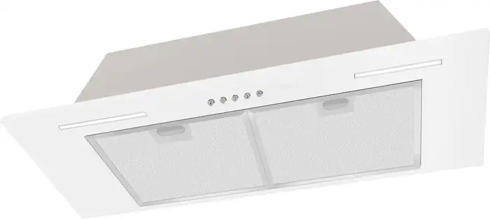 конструкция скрытая, монтаж для встраивания, ширина 79.5 см, управление механическое/кнопочное, производительность мотора 950 м3/ч, цвет белый