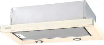 конструкция телескопическая, монтаж для встраивания, ширина 60 см, управление механическое/кнопочное, производительность мотора 650 м3/ч, цвет бежевый