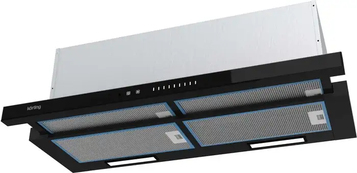 конструкция телескопическая, монтаж для встраивания, ширина 89.8 см, управление слайдерное/сенсорное, производительность мотора 900 м×/ч, цвет черный