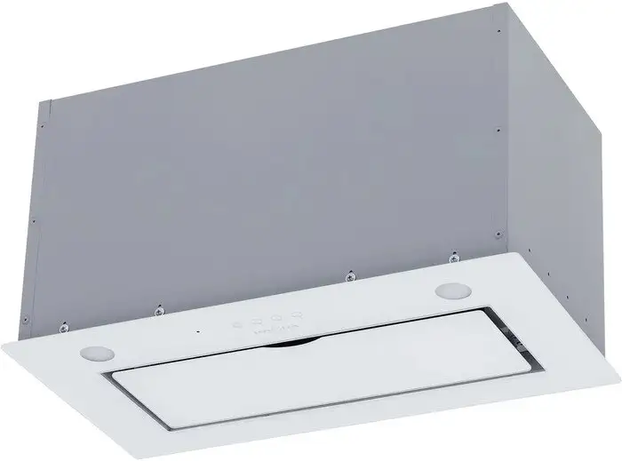 конструкция скрытая, монтаж для встраивания, ширина 52 см, управление сенсорное/дистанционное, производительность вытяжки 1180 м×/ч, цвет белый