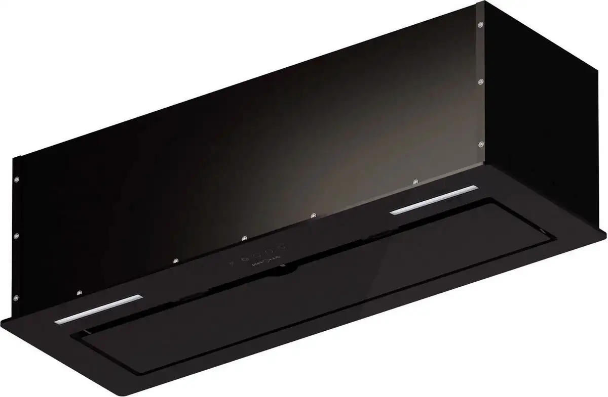 конструкция скрытая, монтаж для встраивания, ширина 82 см, управление сенсорное/жестами, производительность мотора 1180 м×/ч, цвет черный