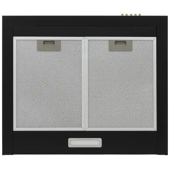 конструкция купольная, монтаж настенный, ширина 59.6 см, управление механическое/кнопочное, производительность мотора 1300 м3/ч, цвет черный