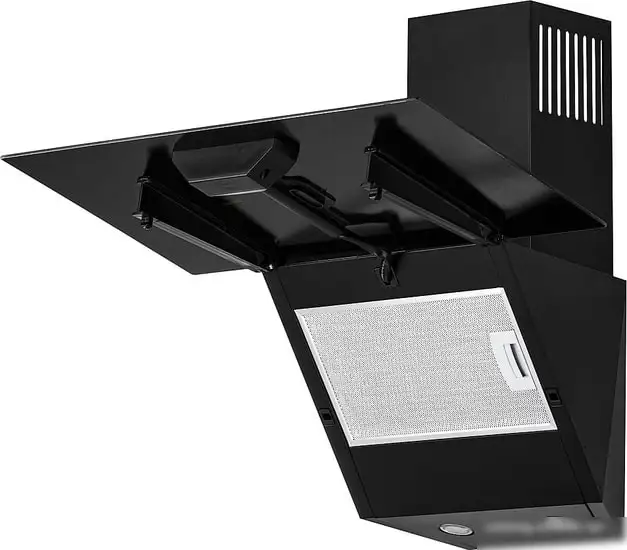 конструкция наклонная, монтаж настенный, ширина 59.6 см, управление механическое/кнопочное, производительность мотора 780 м3/ч, цвет черный