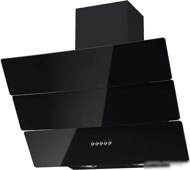 конструкция наклонная, монтаж настенный, ширина 59.6 см, управление механическое/кнопочное, производительность мотора 750 м3/ч, цвет черный