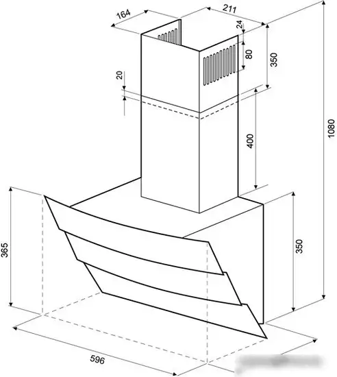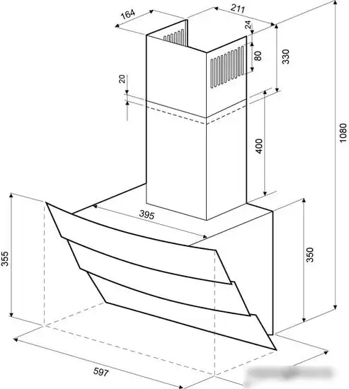 конструкция наклонная, монтаж настенный, ширина 59.6 см, управление механическое/кнопочное, производительность мотора 750 м3/ч, цвет нержавеющая сталь/черный