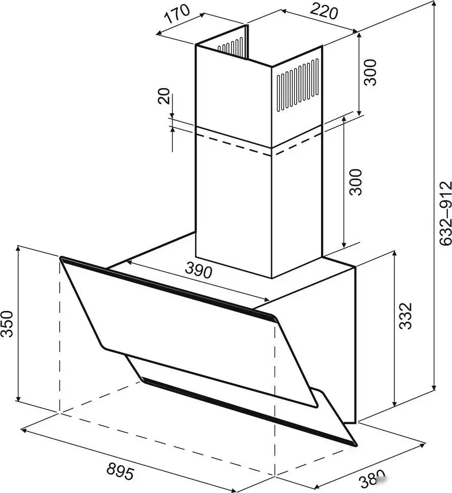 конструкция наклонная, монтаж настенный, ширина 89.5 см, управление сенсорное, цвет черный