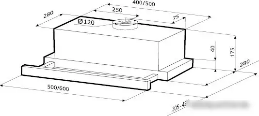 конструкция телескопическая, монтаж для встраивания, ширина 50 см, управление механическое/кнопочное, производительность мотора 390 м×/ч, цвет коричневый