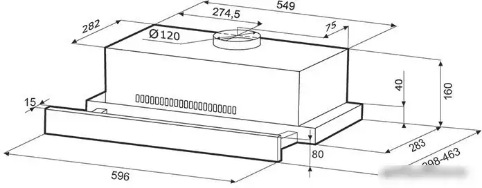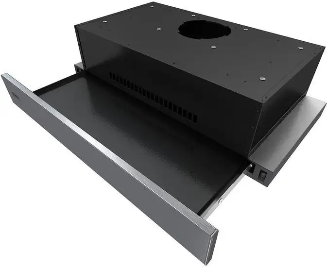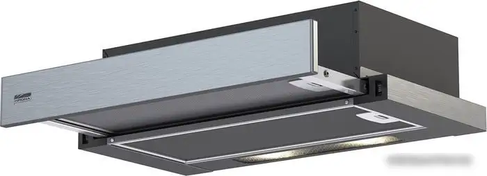 конструкция телескопическая, монтаж для встраивания, ширина 59.6 см, управление механическое/кнопочное, производительность мотора 780 м³/ч, цвет нержавеющая сталь/черный