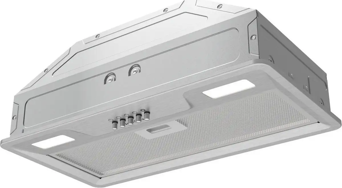 конструкция скрытая, монтаж для встраивания, ширина 60 см, управление механическое/кнопочное, производительность вытяжки 700 м×/ч, производительность мотора 850 м×/ч, цвет нержавеющая сталь