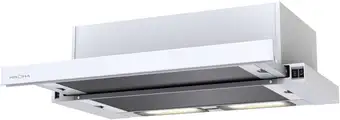 конструкция телескопическая, монтаж для встраивания, ширина 60 см, управление механическое/кнопочное, производительность мотора 600 м3/ч, цвет белый