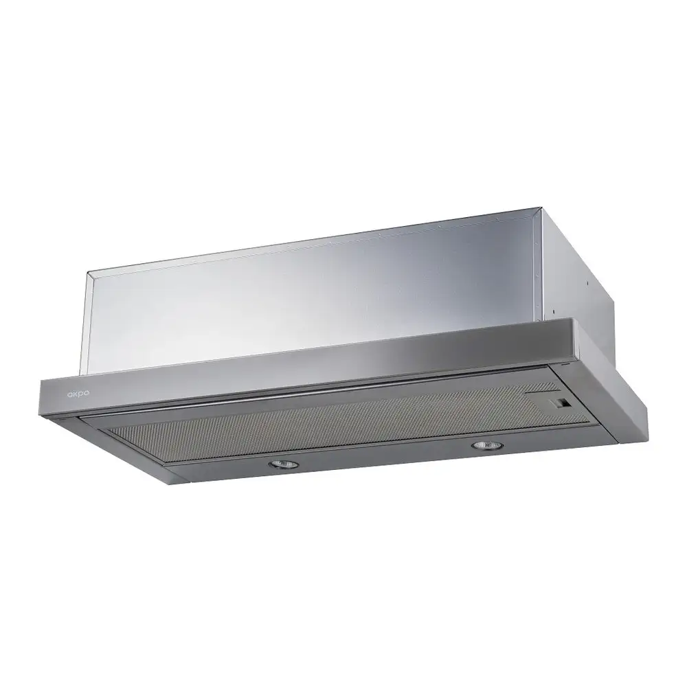 конструкция телескопическая, монтаж для встраивания, ширина 60 см, управление механическое/кнопочное, производительность мотора 520 м3/ч, цвет серый