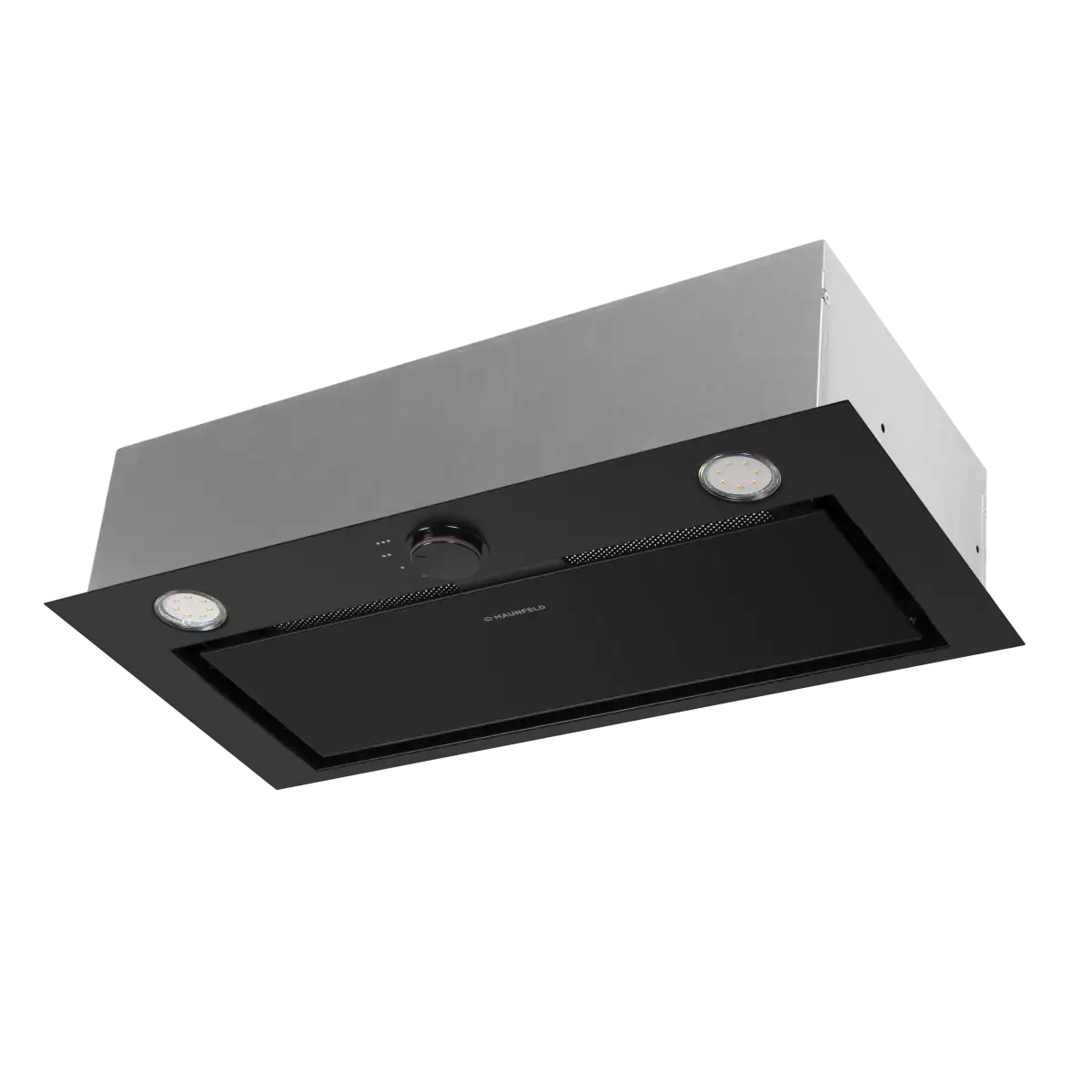 конструкция скрытая, монтаж для встраивания, ширина 59.8 см, управление электронное, производительность мотора 750 м3/ч, цвет черный
