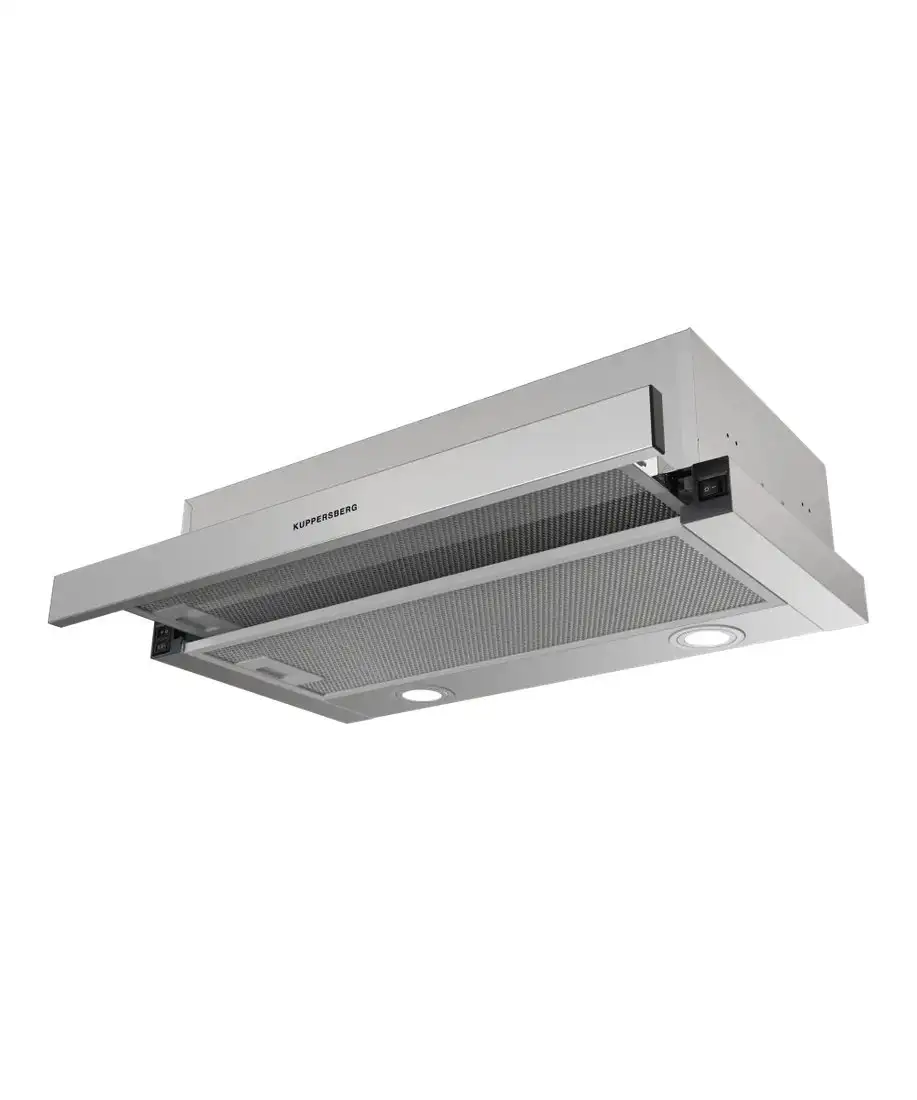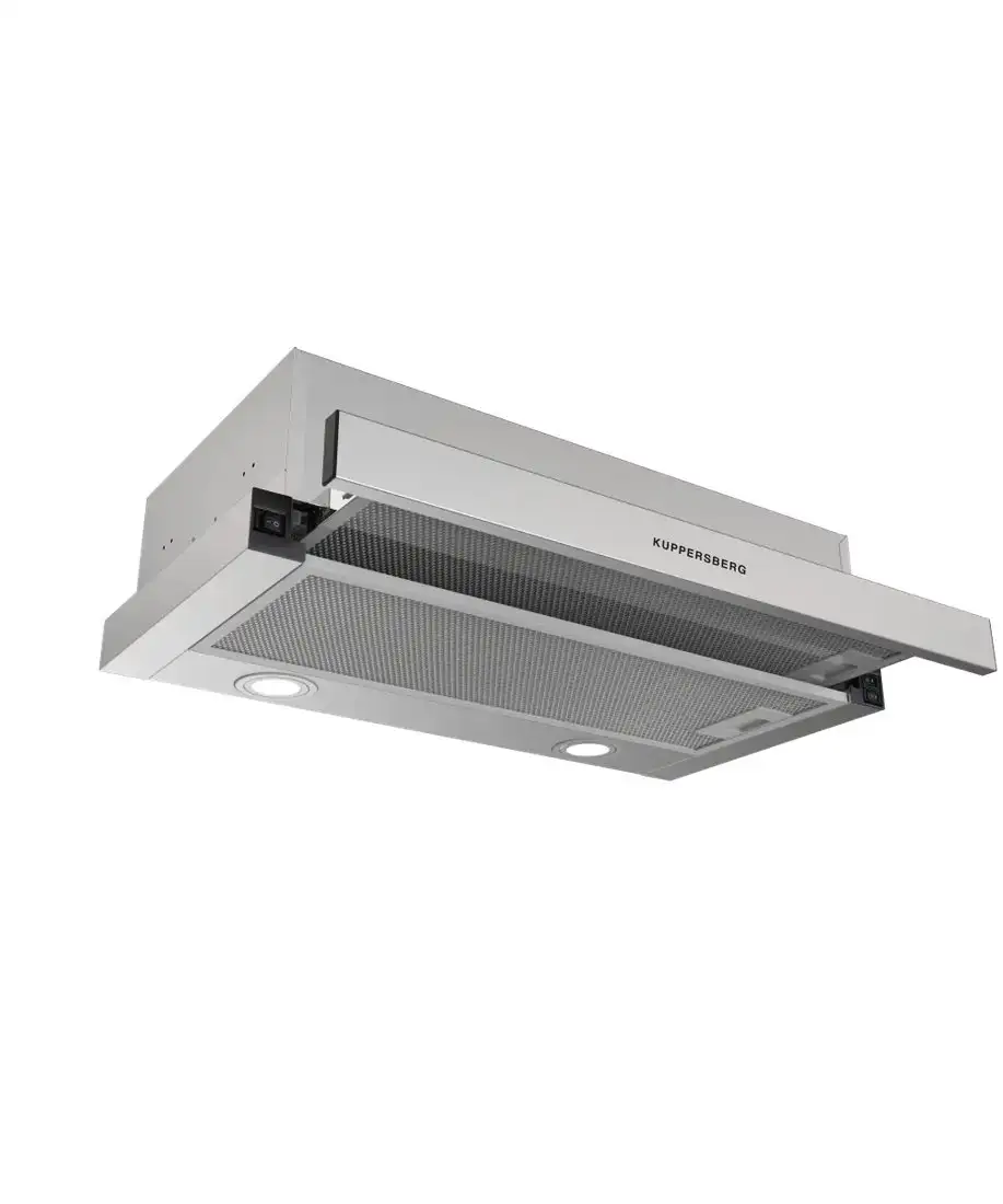 Кухонная вытяжка KUPPERSBERG Slimdual 60 X имеет классический стиль и телескопическую конструкцию, которая легко встраивается в кухонный шкаф. Она выполнена из нержавеющей стали, что делает её прочной и долговечной. Вытяжка оснащена двумя алюминиевыми жироулавливающими фильтрами и светодиодным освещением с двумя лампами по 3 Вт, которое обеспечивает хорошее освещение рабочей зоны. Максимальная производительность отвода воздуха достигает 650 куб. м/ч, а циркуляции — 400 куб. м/ч, что эффективно справляется с кухонными запахами и дымом. Управление осуществляется с помощью слайдерных переключателей, есть три скорости для выбора оптимального режима. Уровень шума при работе не превышает 53 дБА, что минимизирует беспокойство. Вытяжка имеет две встроенные мотора, которые обеспечивают хорошую мощность при низком энергопотреблении. Ее размеры — ширина 59,5 см, глубина 30 см, высота 16,1 см, а диаметр воздуховода — 120 мм. Она идеально подходит для тех, кто ищет надежное и стильное решение для кухни.