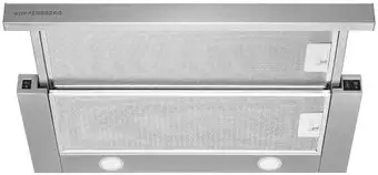 конструкция телескопическая, монтаж для встраивания, ширина 59.7 см, управление механическое/кнопочное, производительность мотора 1500 м×/ч, цвет нержавеющая сталь