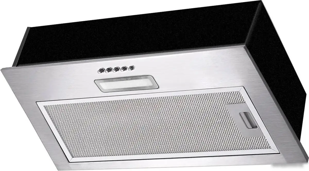 конструкция скрытая, монтаж для встраивания, ширина 52.5 см, управление механическое/кнопочное, производительность мотора 500 м×/ч, цвет нержавеющая сталь