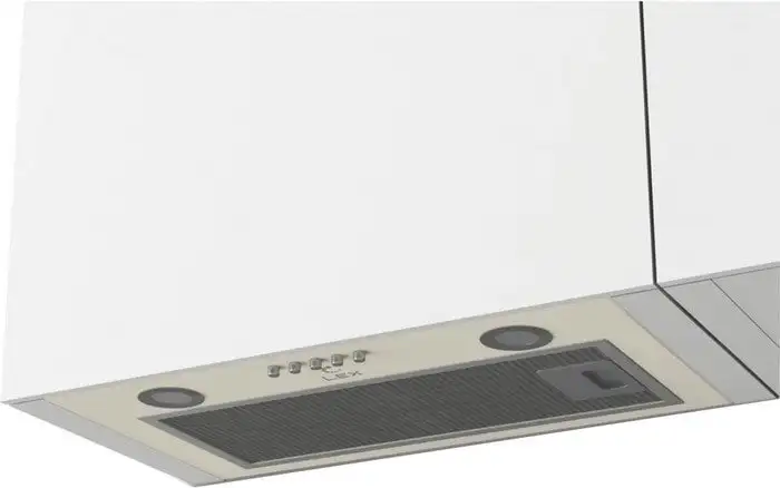 конструкция скрытая, монтаж для встраивания, ширина 52.5 см, управление механическое/кнопочное, производительность мотора 1050 м3/ч, цвет слоновая кость