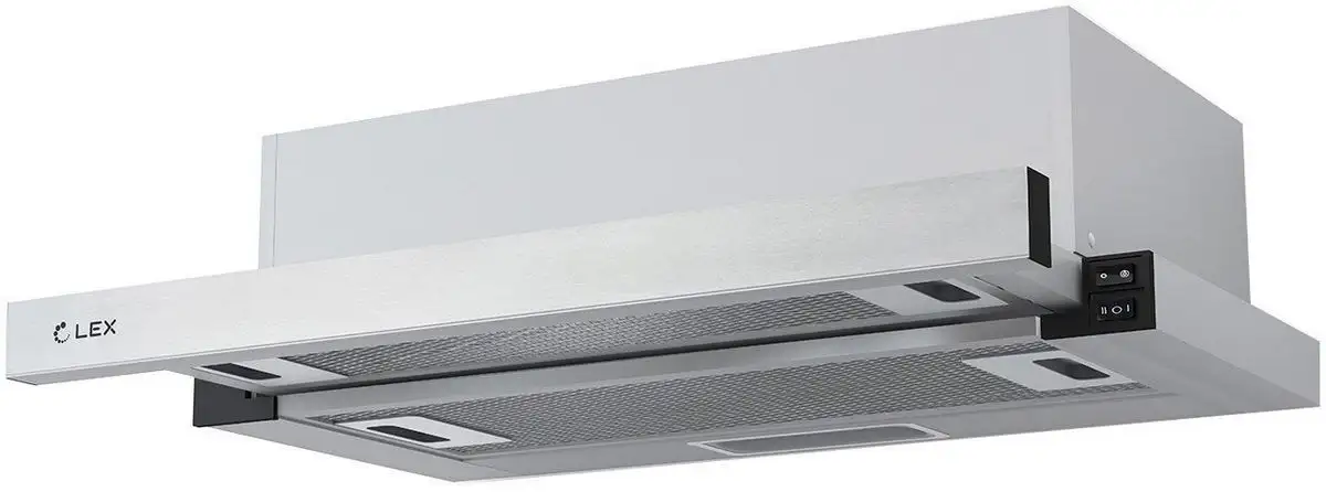 Кухонная вытяжка LEX Hide 600 Inox выполнена в классическом стиле и легко встраивается в кухонный шкаф благодаря монтажу на основе телескопической конструкции. Она управляется механическим слайдером, что делает регулировку скорости простой и удобной. Вытяжка изготовлена из нержавеющей стали, которая устойчива к коррозии и легко очищается. Светодиодное освещение мощностью 2 Вт хорошо освещает плиту, делая приготовление пищи более комфортным. Максимальная производительность отвода достигает 500 кубометров в час, что эффективно устраняет запахи и загрязнения. В устройство встроены два алюминиевых жироулавливающих фильтра, которые нужно регулярно чистить. Вытяжка работает тихо — уровень шума составляет от 32 до 42 дБ. Управление осуществляется через два режима скоростей, это помогает адаптировать работу устройства под разные нужды. Ее компактные размеры и легкий вес облегчают установку и уход за ней. В комплекте отсутствует угольный фильтр и системы ионизации, что подойдет для тех, кто предпочитает использовать дополнительные средства для очистки воздуха.