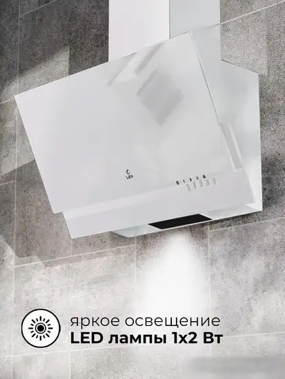 Кухонная вытяжка LEX Mera 500 в белом цвете обладает классическим дизайном и наклонной конструкцией, которая легко вписывается в любой интерьер. Эта модель крепится на стену и управляется механической кнопкой, что обеспечивает простоту использования. Она работает с одной мощной моторной установкой мощностью 80 Вт и обеспечивает максимальную производительность отвода воздуха до 650 куб. м/ч, быстро очищая кухню от запахов и паров. Вытяжка оснащена периметральным воздухопоглощением и жироулавливающим алюминиевым фильтром, что помогает поддерживать чистоту внутри устройства. Светодиодное освещение с мощностью 2 Вт хорошо освещает рабочую зону. Устройство работает очень тихо, уровень шума не превышает 46 дБА. Размеры вытяжки позволяют удобно установить её на стандартной кухне: ширина 49,5 см и высота 33 см. В комплект входит воздуховод диаметром 120 мм, что облегчает монтаж и эксплуатацию.