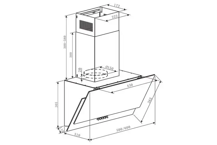 конструкция наклонная, монтаж настенный, ширина 60 см, управление механическое/кнопочное, производительность мотора 700 м×/ч, цвет бежевый